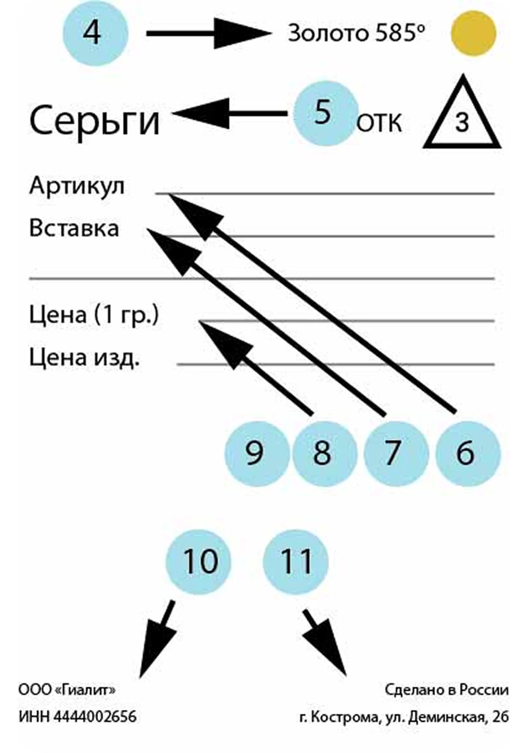 Каждое изделие маркируется биркой и проходит обязательный контроль Государственной Пробирной Инспекции Российской Федерации.