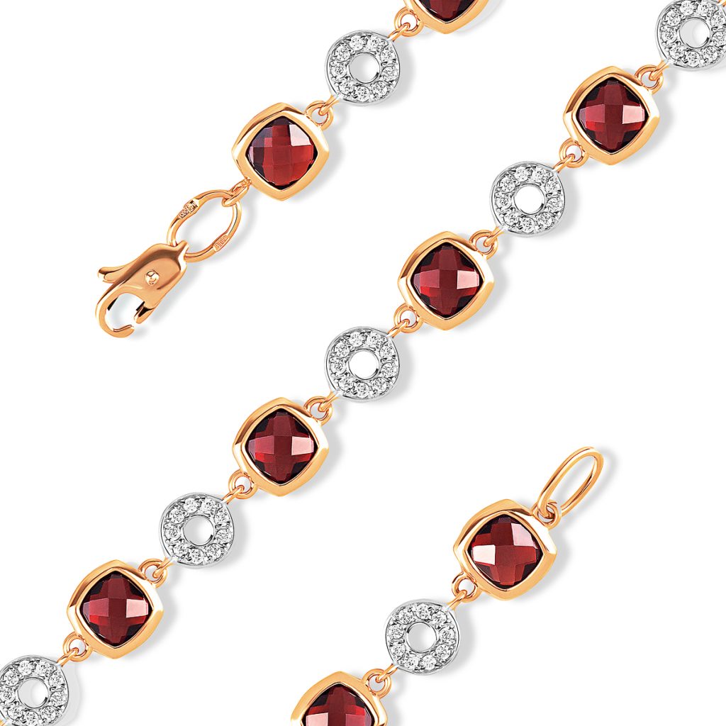 Браслет из золота 585 пробы с полудрагоценными вставками