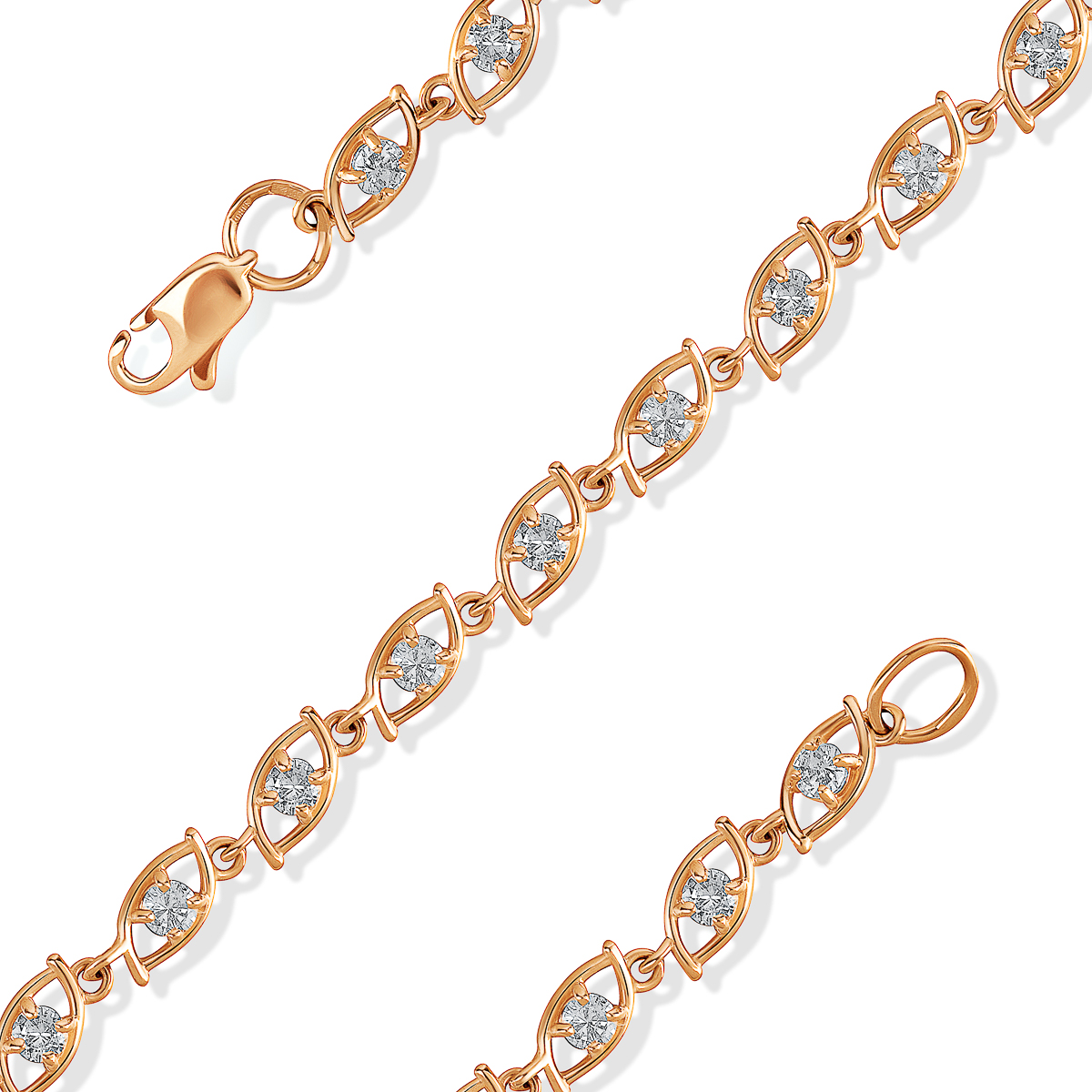 Браслет из золота 585 пробы с фианитами