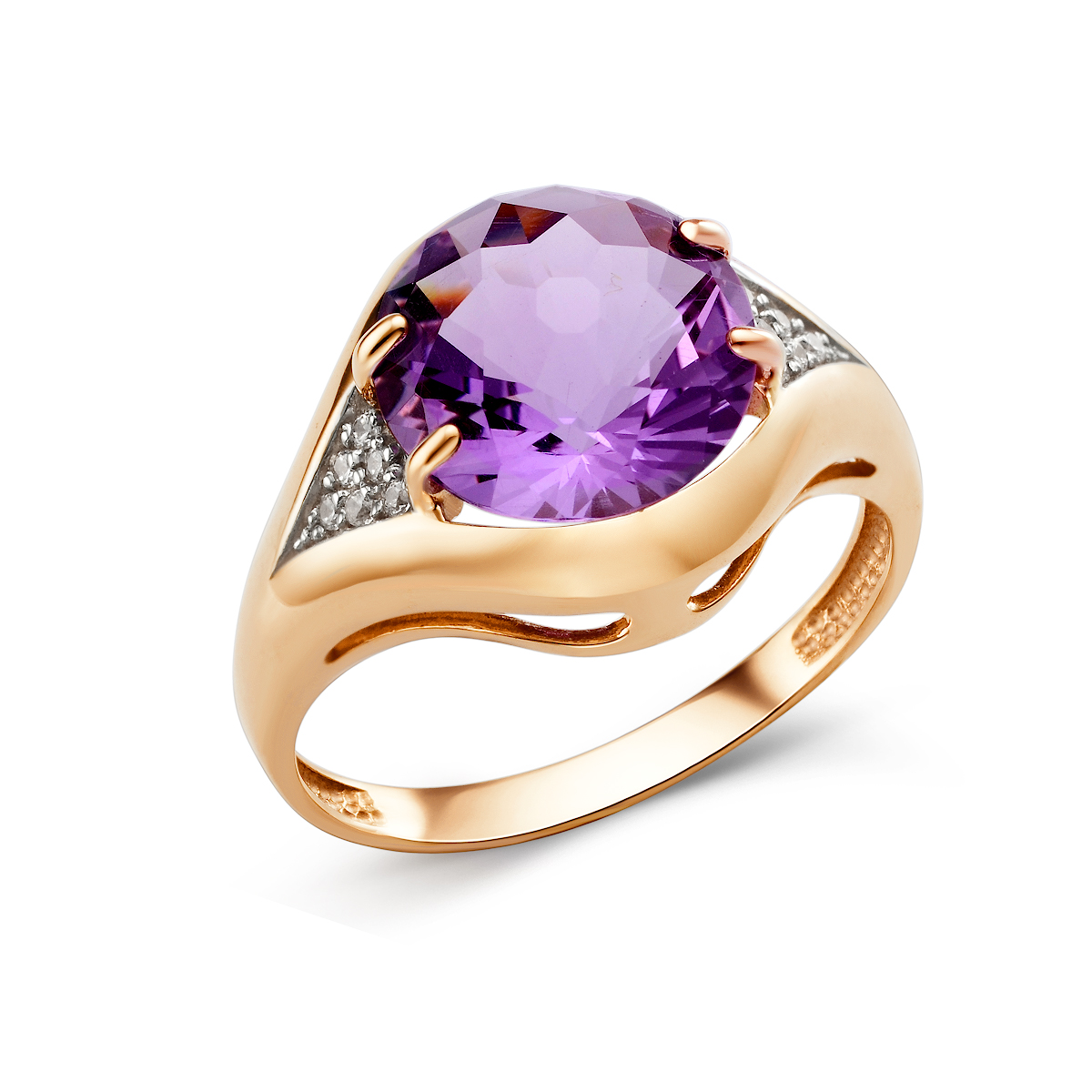 Кольцо из золота 585 пробы с полудрагоценной вставкой и фианитами