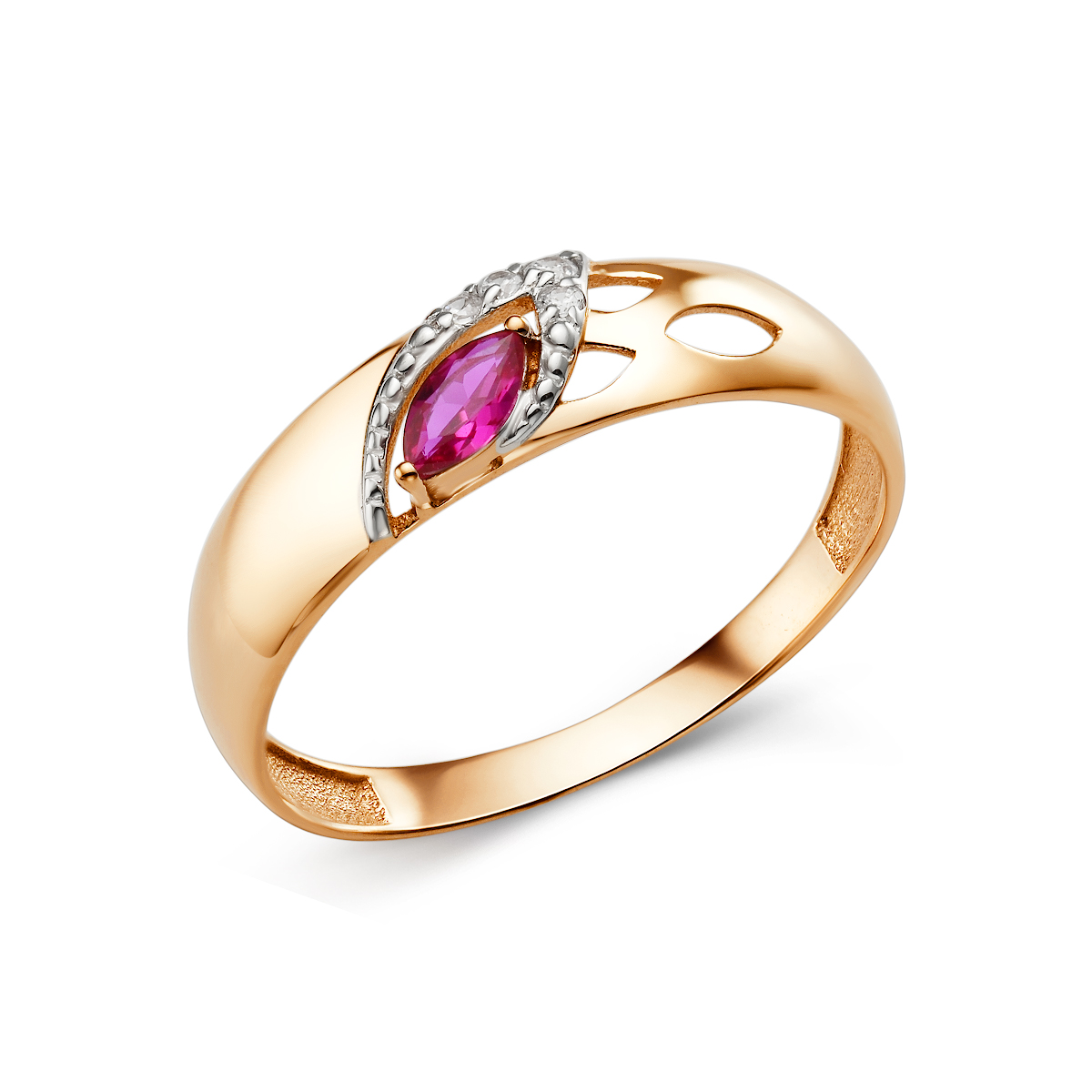Кольцо из золота 585 пробы с полудрагоценной вставкой и фианитами