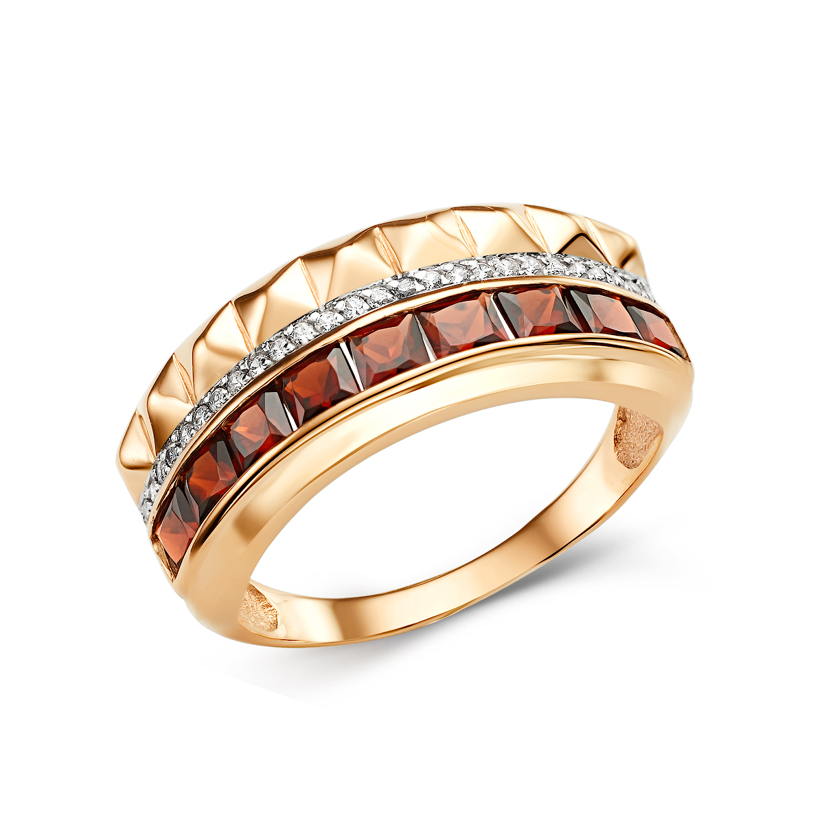 Кольцо из золота 585 пробы с полудрагоценными вставками и фианитами