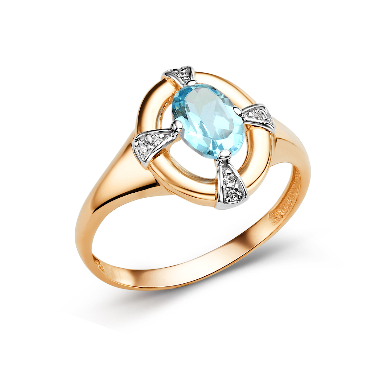 Кольцо из золота 585 пробы с полудрагоценными вставками и фианитами