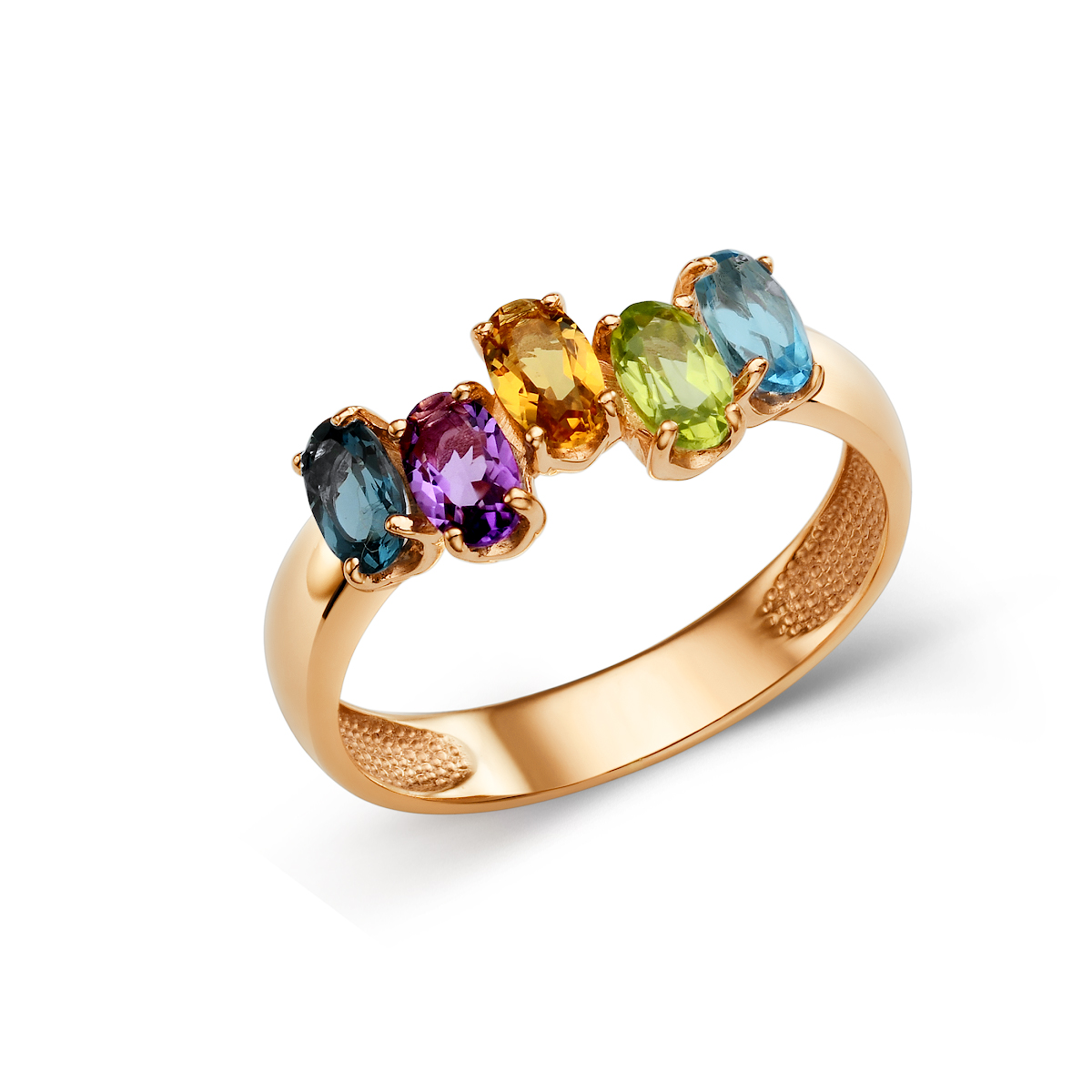 Кольцо из золота 585 пробы с полудрагоценными вставками