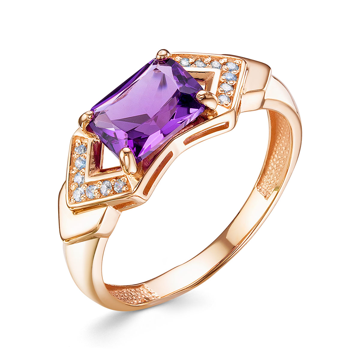Кольцо из золота 585 пробы с полудрагоценной вставкой и фианитами