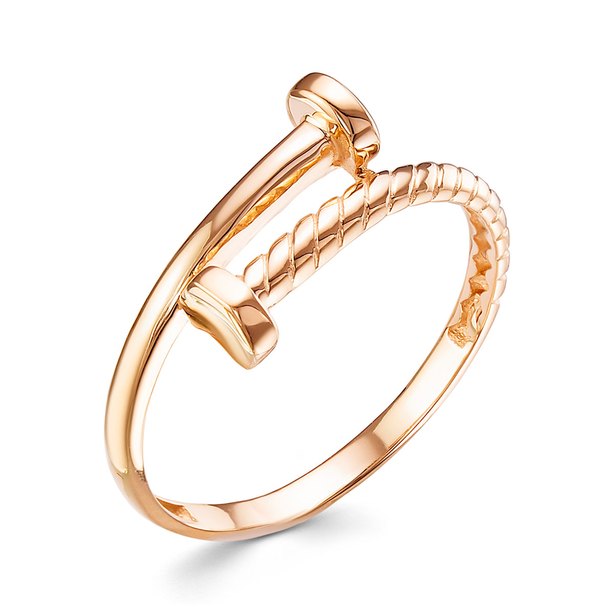 Кольцо из золота 585 пробы в виде двойного гвоздя без вставок