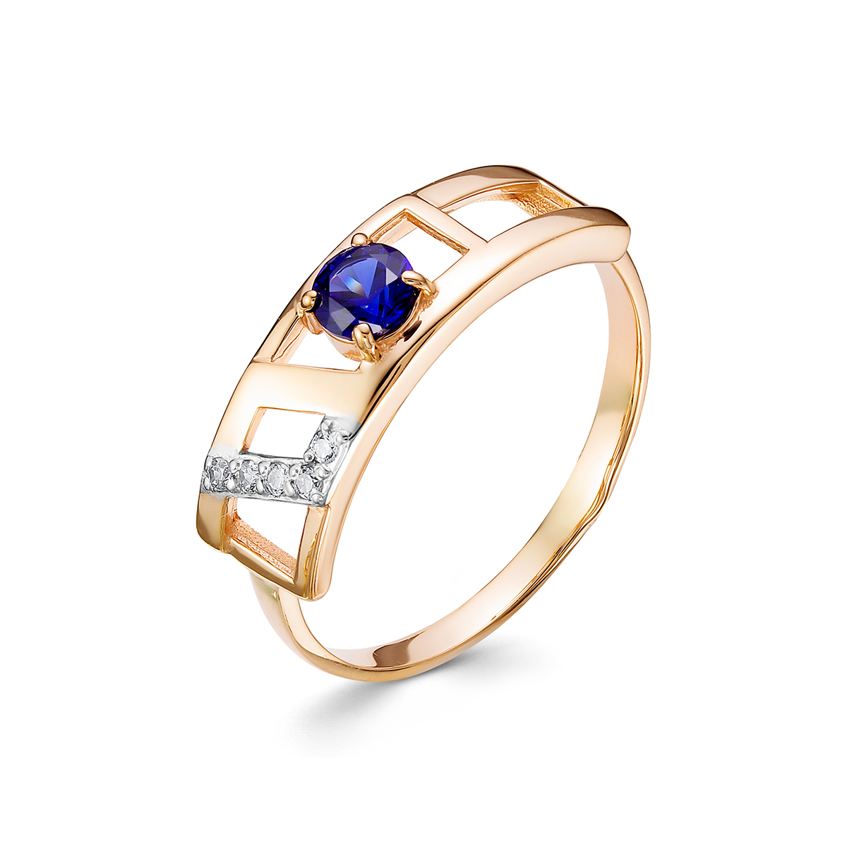 Кольцо из золота 585 пробы с полудрагоценной вставкой и фианитами