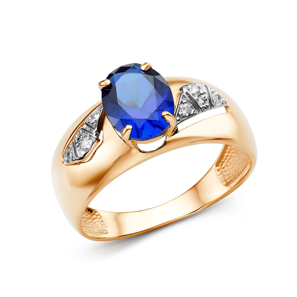 Кольцо из золота 585 пробы с полудрагоценной вставкой и фианитами