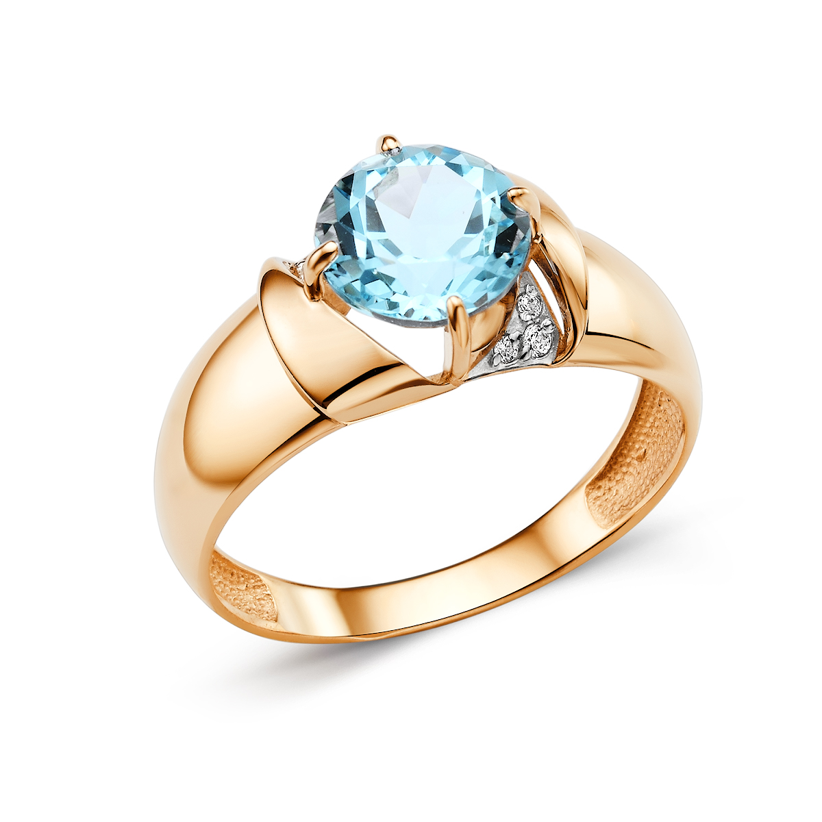 Кольцо из золота 585 пробы с полудрагоценной вставкой и фианитами