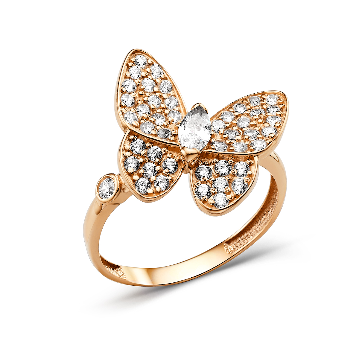 Кольцо из золота 585 пробы в форме бабочки с фианитами