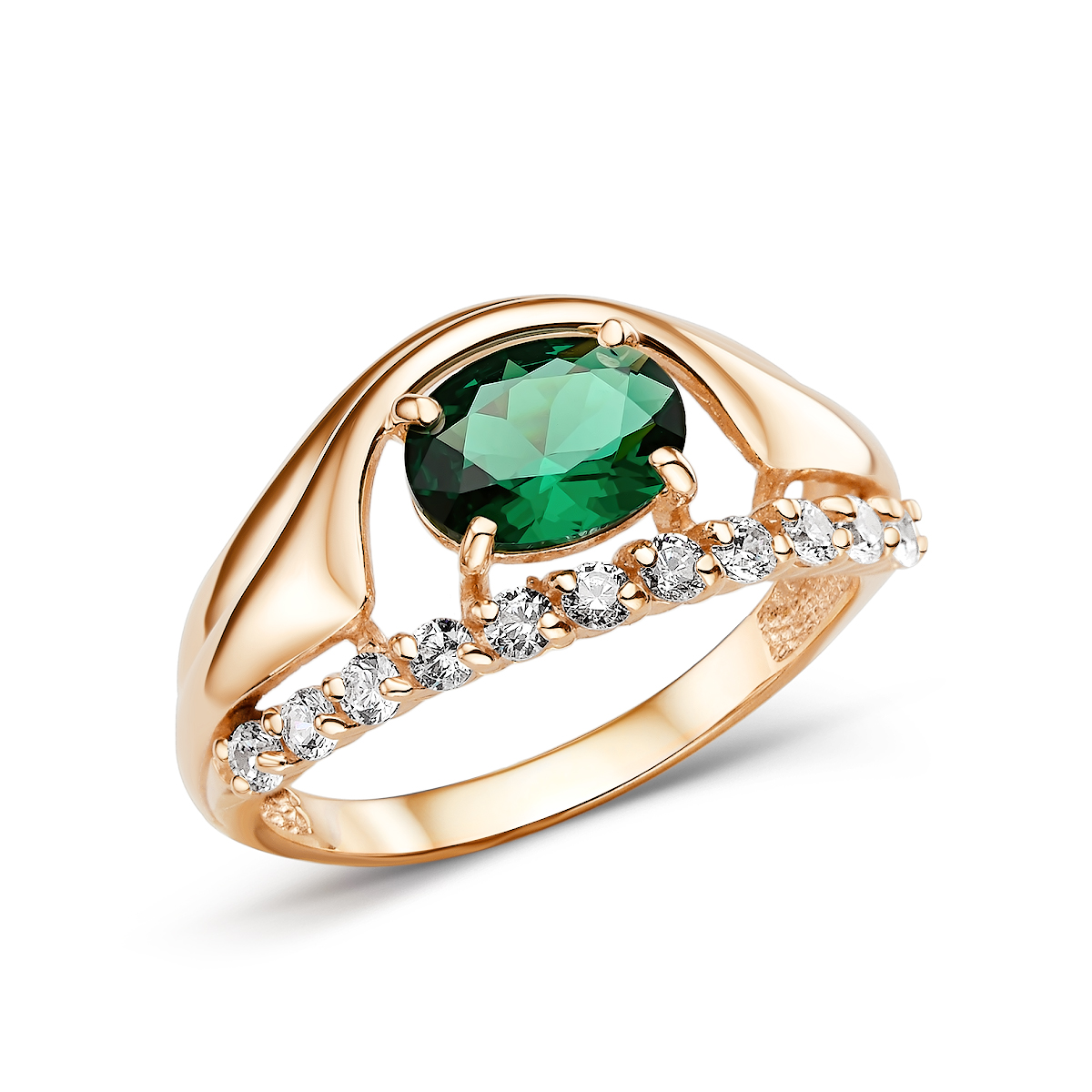 Кольцо из золота 585 пробы с полудрагоценной вставкой и фианитами