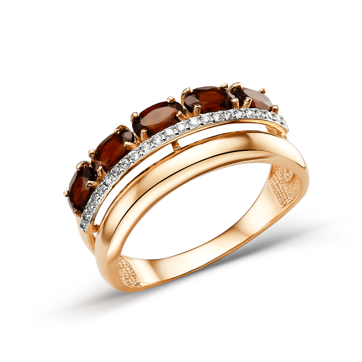 Кольцо из золота 585 пробы с полудрагоценными вставками и фианитами