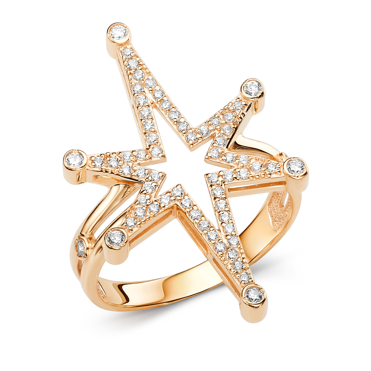 Кольцо из золота 585 пробы в виде звезды с фианитами