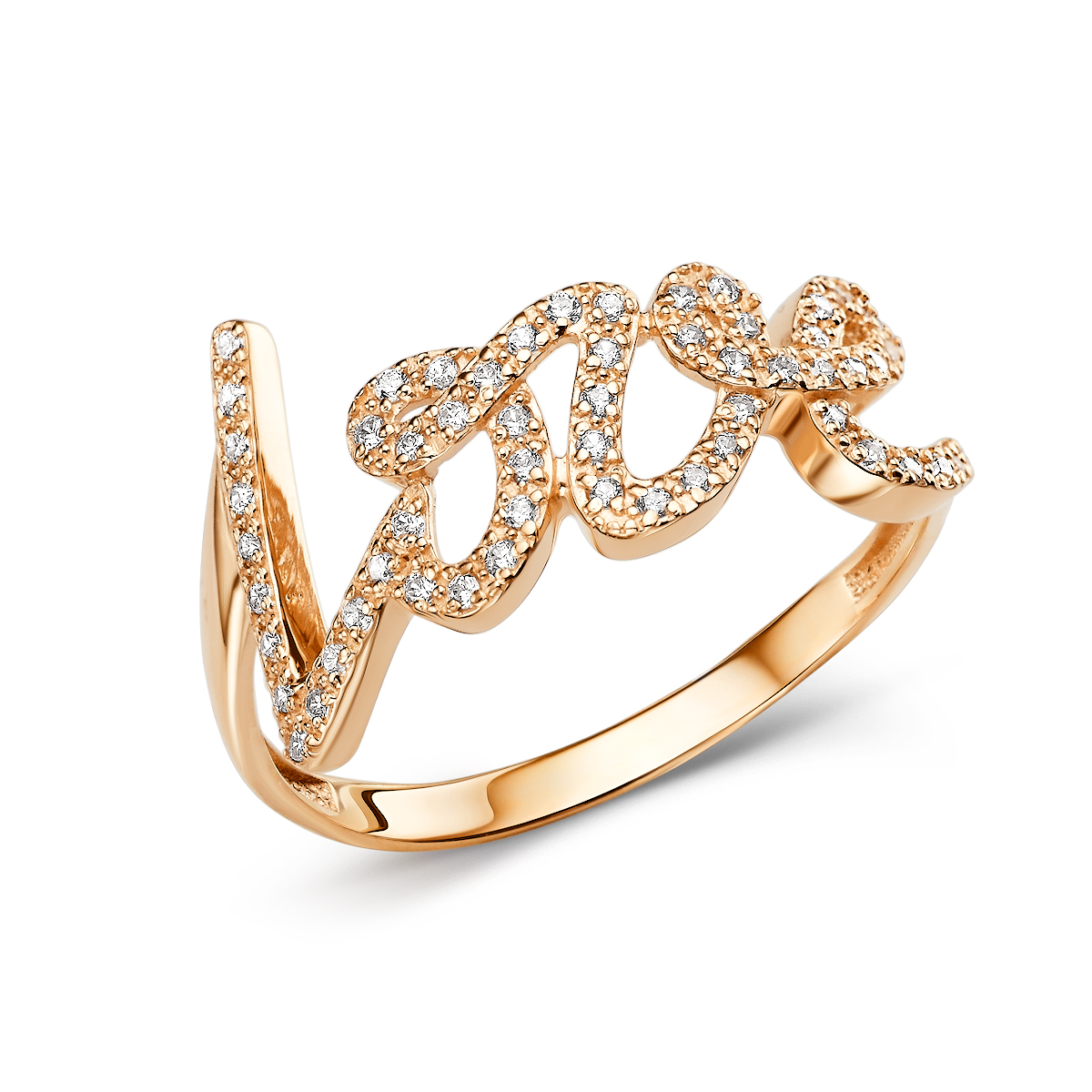 Кольцо из золота 585 пробы с надписью «Love» с фианитами