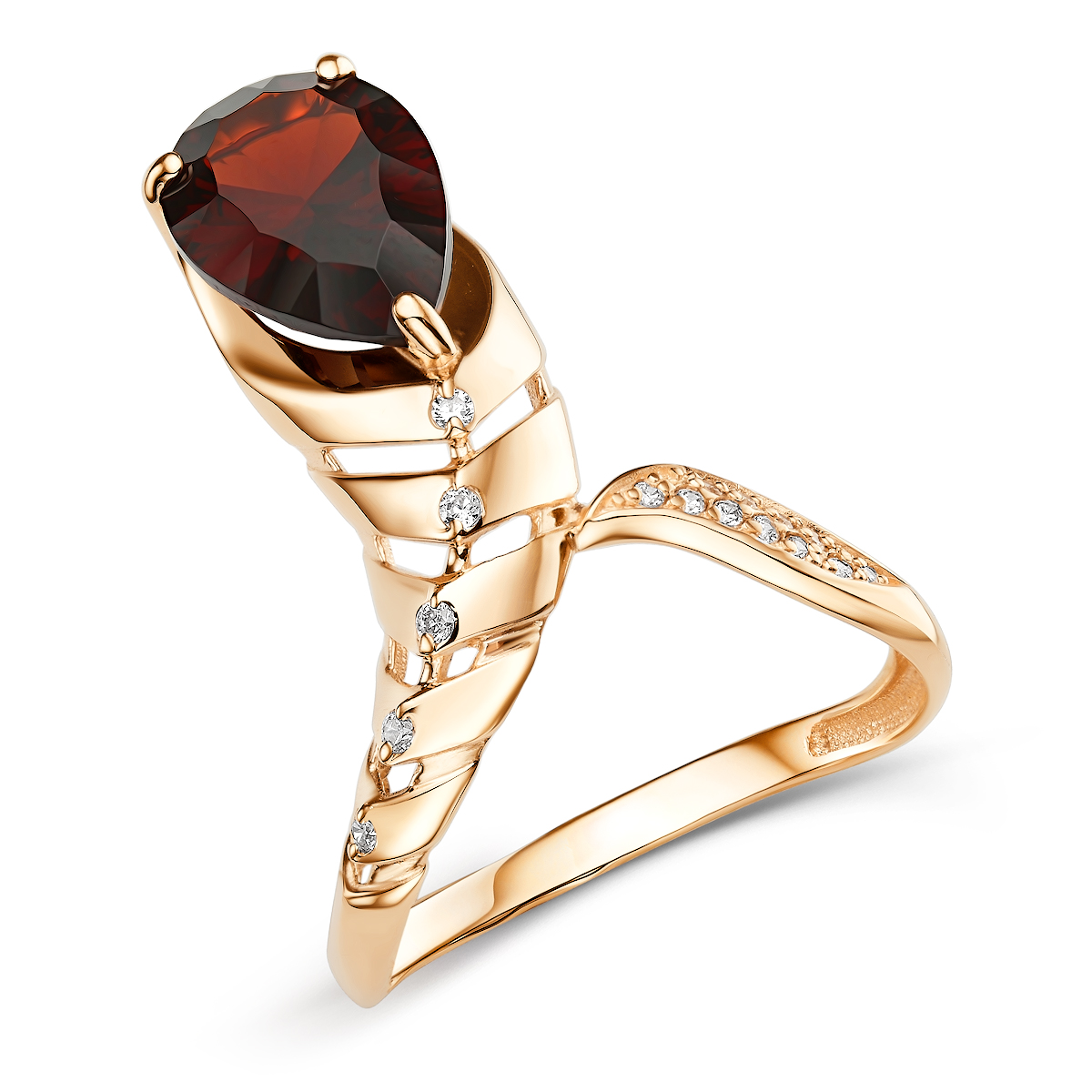 Кольцо из золота 585 пробы с полудрагоценной вставкой и фианитами