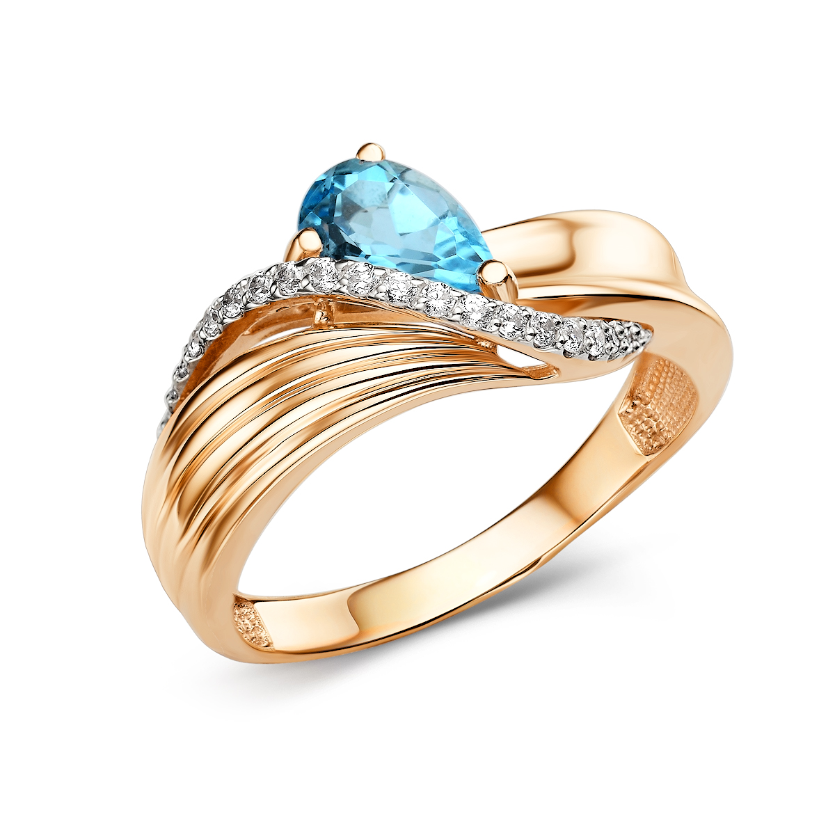 Кольцо из золота 585 пробы с полудрагоценной вставкой и фианитами