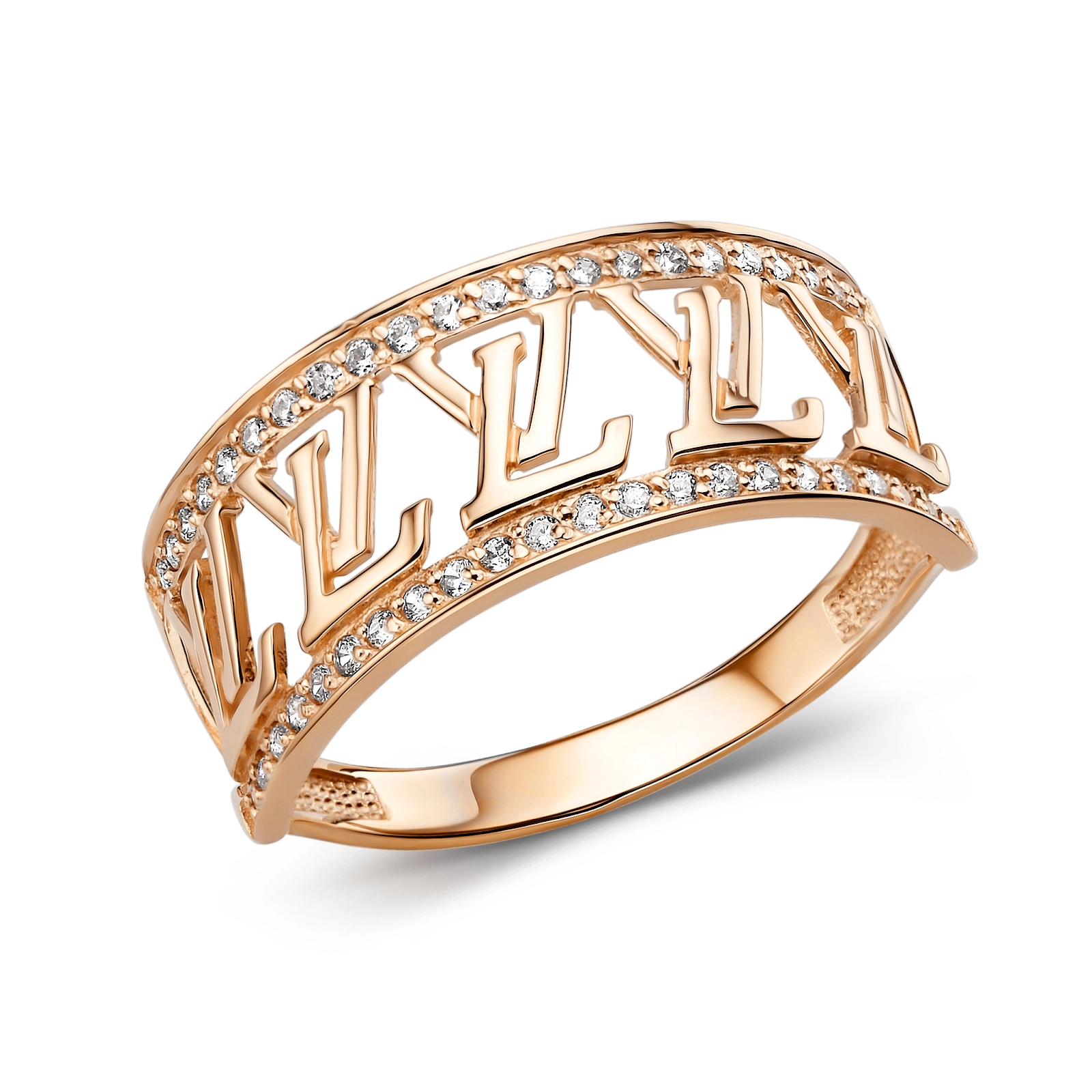 Кольцо из золота 585 пробы с фианитами в стиле Louis Vuitton