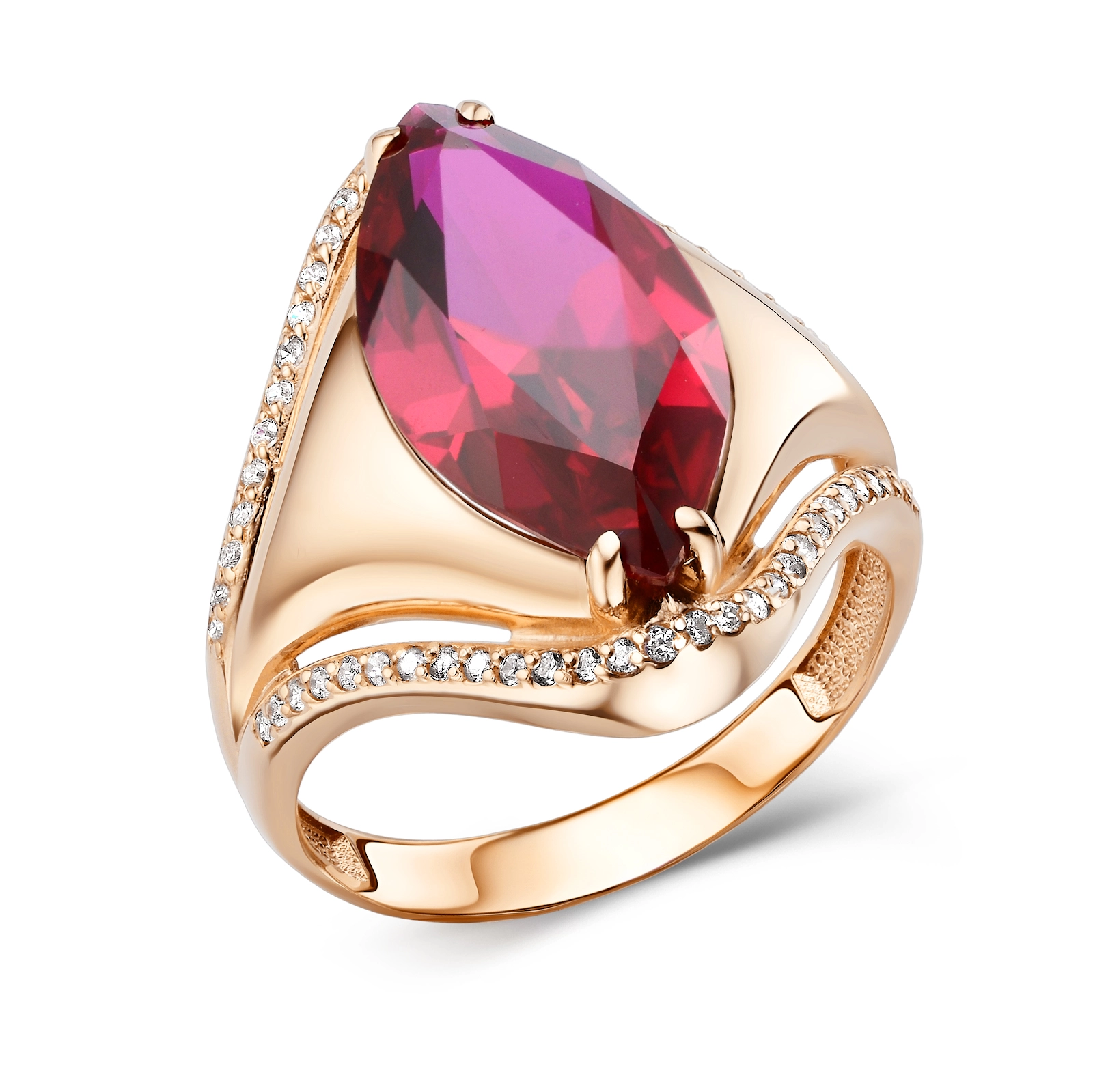 Кольцо из золота 585 пробы с полудрагоценной вставкой и фианитами