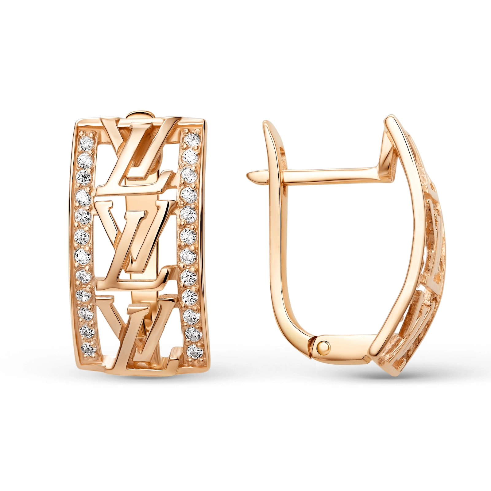 Серьги из золота 585 пробы с фианитами в стиле «Louis Vuitton»