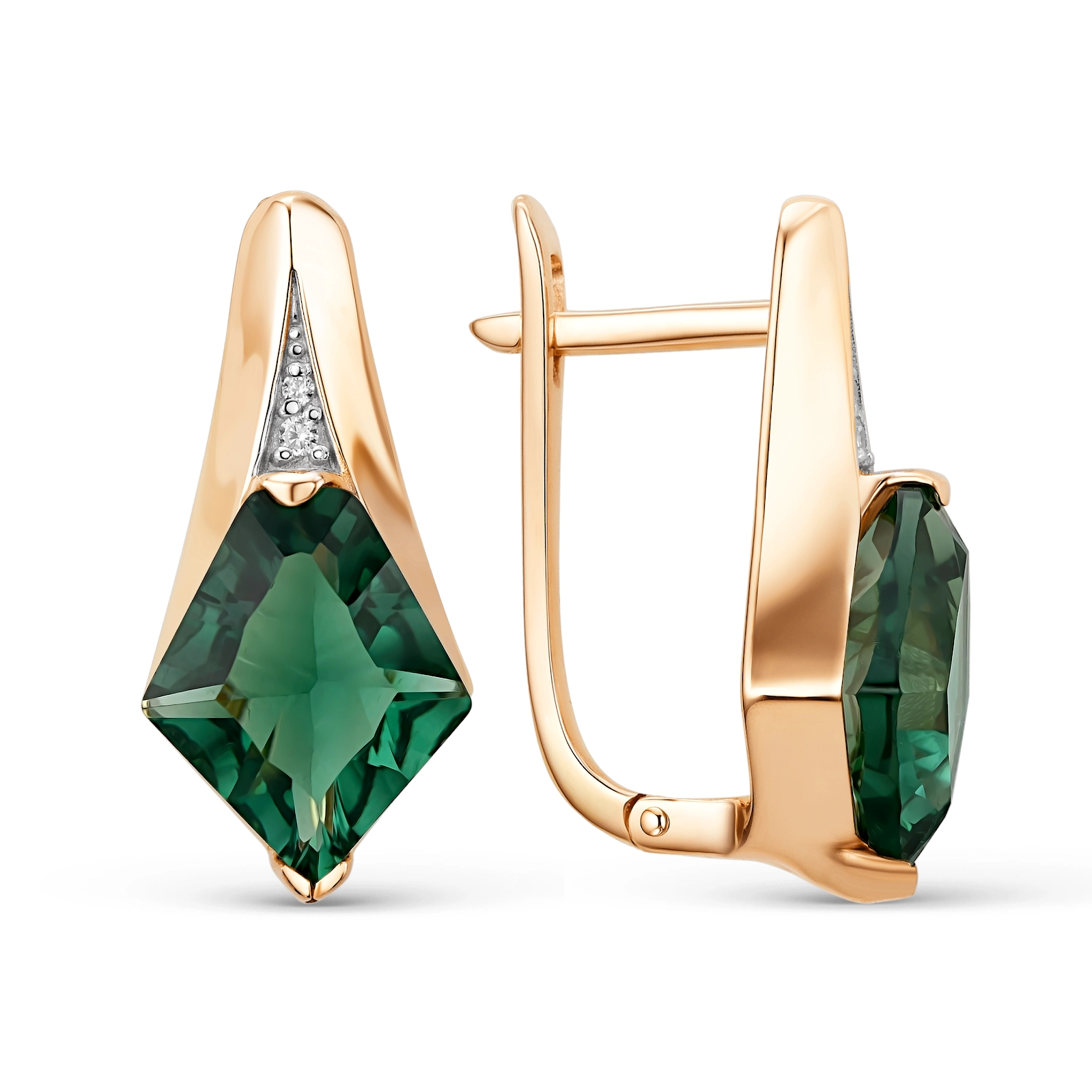 Серьги из золота 585 пробы с полудрагоценной вставкой и фианитами